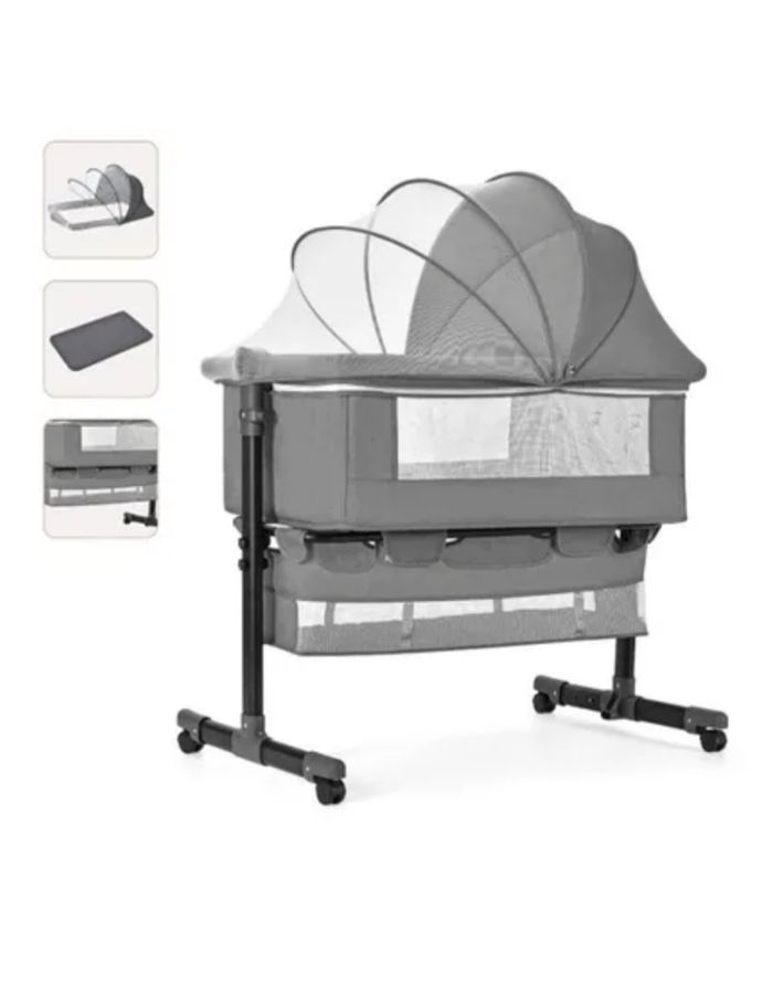 Lit Cododo 2 en 1. La superficie de couchage mesure 90 x 50 cm. Fonctions du produit: portables, roues à roulettes, lits de jeu, berceaux en fonction de la hauteur de levage, il peut également y avoir panier de rangement En plus j'ai racheté un matelas plus épais de très bonne qualité prix neuf 45€