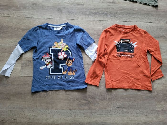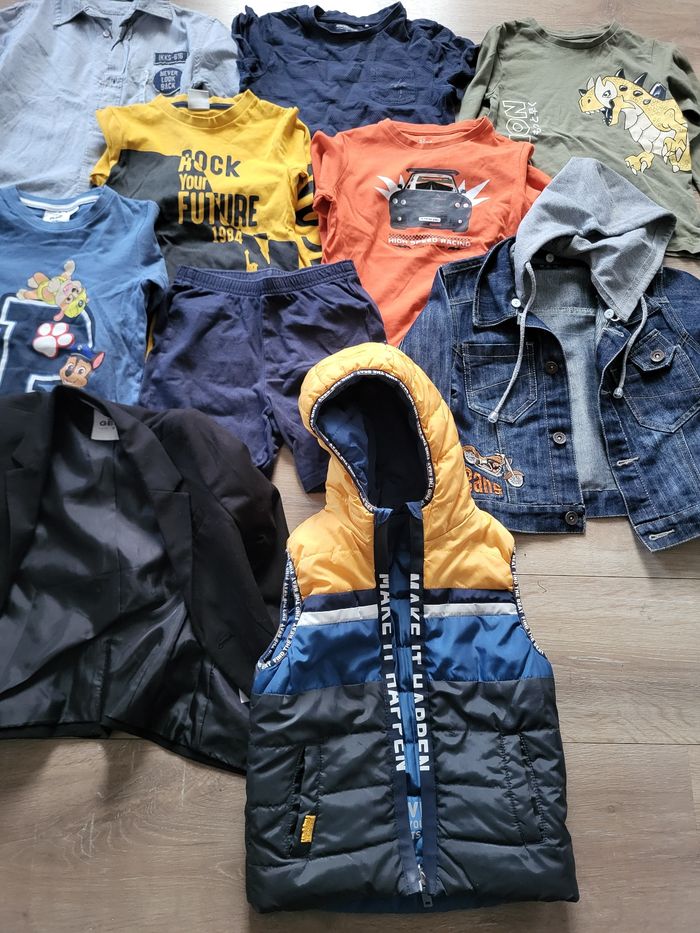Lots de vêtements garçon, en bon état, composé de 10 pièces 1 doudoune sans manches, 1 chemise, 1 tee shirt manche courte, 1 short, 4 tee shirts manches longues, 1 blazer, 1 veste en jean Plusieurs marque dont boboli, ikks, gémo, pat patrowl, D&S Taille 5 ans Je rajoute un lot de vêtements dans le colis non vendable Prix 25 euros