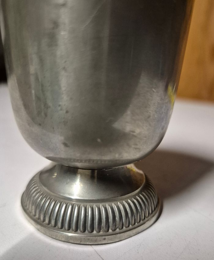 Timbale tulipe en etain brillant Hauteur:8cm Diametre:6.5cm Tres bon etat #timbale #timbaletulipe #timbaleetain #gobeletetain #taimbalenaissanceetain #etain