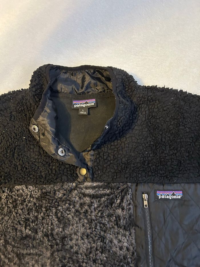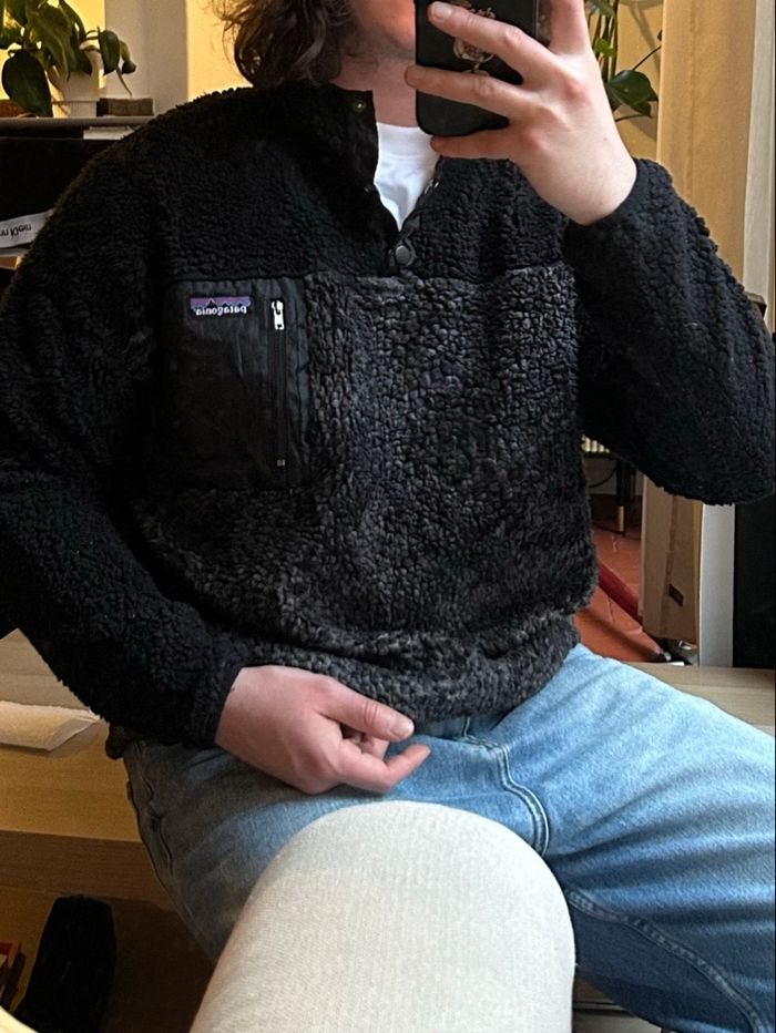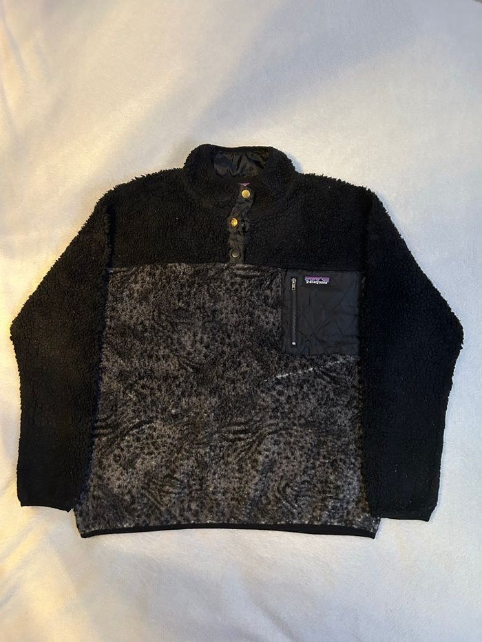 Patagonia, polaire Patagonia, polaire vintage, veste polaire Patagonia, polaire homme, polaire sherpa, sherpa fleece, polaire épaisse, polaire chaude, polaire boutonnée, boutons pression, col montant, poche poitrine zippée, fleece jacket, pullover polaire, polaire style rétro, vintage outdoor, vêtement vintage, outdoor vintage, gorpcore, utilitywear, style outdoor, randonnée, montagne, nature, aventure, veste hiver, polaire mi-saison, layering homme, menswear, mode homme, polaire noire, polaire gris foncé, bicolore, basique outdoor, essentiel dressing homme, vêtement durable, marque responsable, Snap, Snap-T