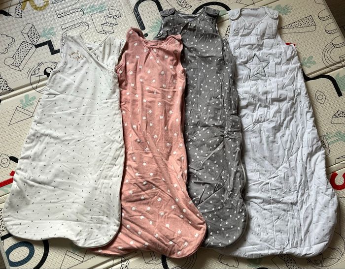 ⚠️ bien lire le descriptif de l'annonce pour avoir le détail des gigoteuses du lot . 4 gigoteuses : - 1 vertbaudet 18/36 mois blanche - 1 La Redoute 18/36 mois grise avec boutons pression au dos pour réduire la taille (cf photo) - 1 kiabi 18/36 mois rose avec boutons pression au dos pour réduire la taille (cf photo) - 1 kiabi blanche 6/24 mois fermeture cache cœur avec boutons pression au dos pour réduire la taille. Très bon état