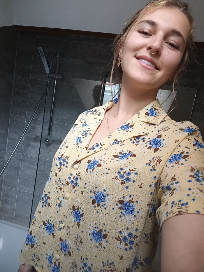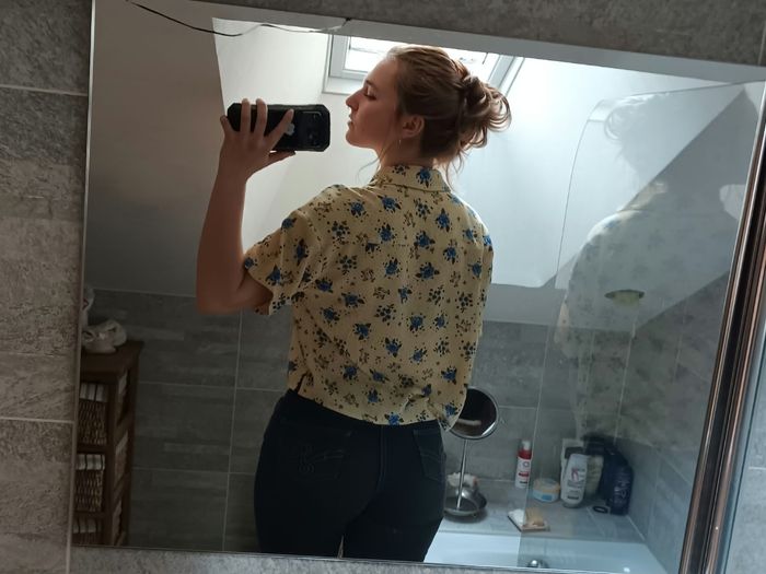 Chemise courte Marque : monki Taille : XS oversize cette marque grande Couleur beige et bleu Motif : fleur Matière : crêpe ⚠️ N'hésitez pas à checker mes autres articles, je fais des réductions automatiques à chaques lot😉  Je réponds rapidement à toute question et expédie le plus rapidement possible 🤗⚡