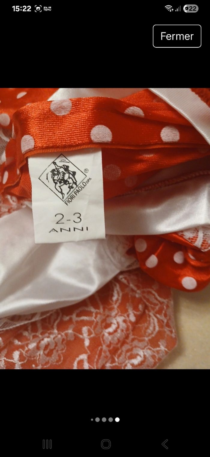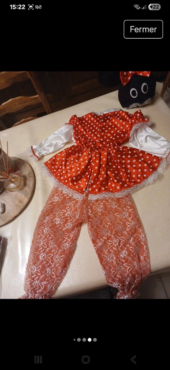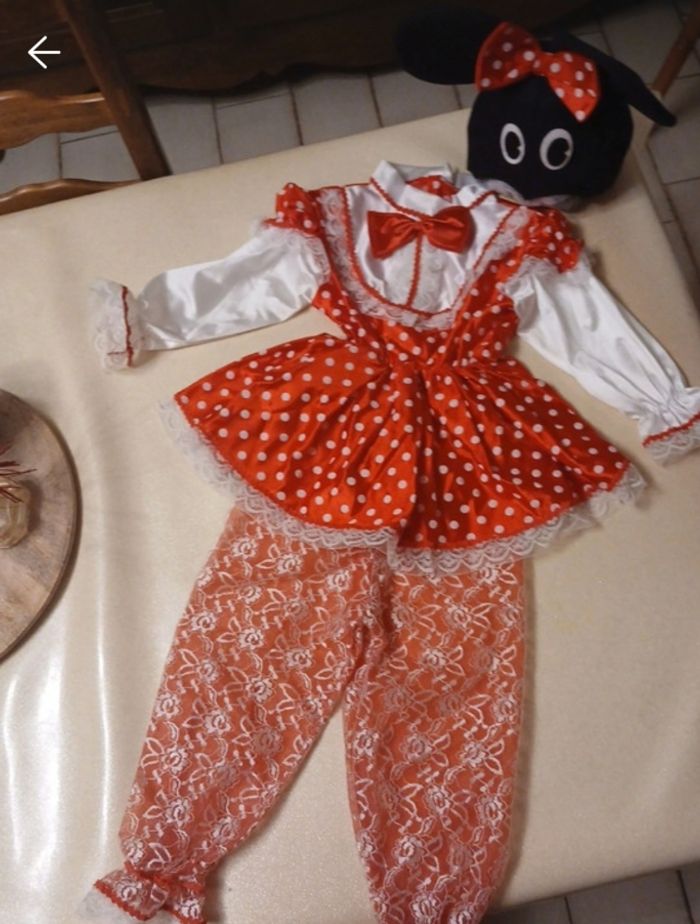 Déguisement Minnie rouge et blanc, avec son bonnet oreilles de Minnie Très bon état, porter qu’une fois. Très belle matière. Taille 2/3 ans