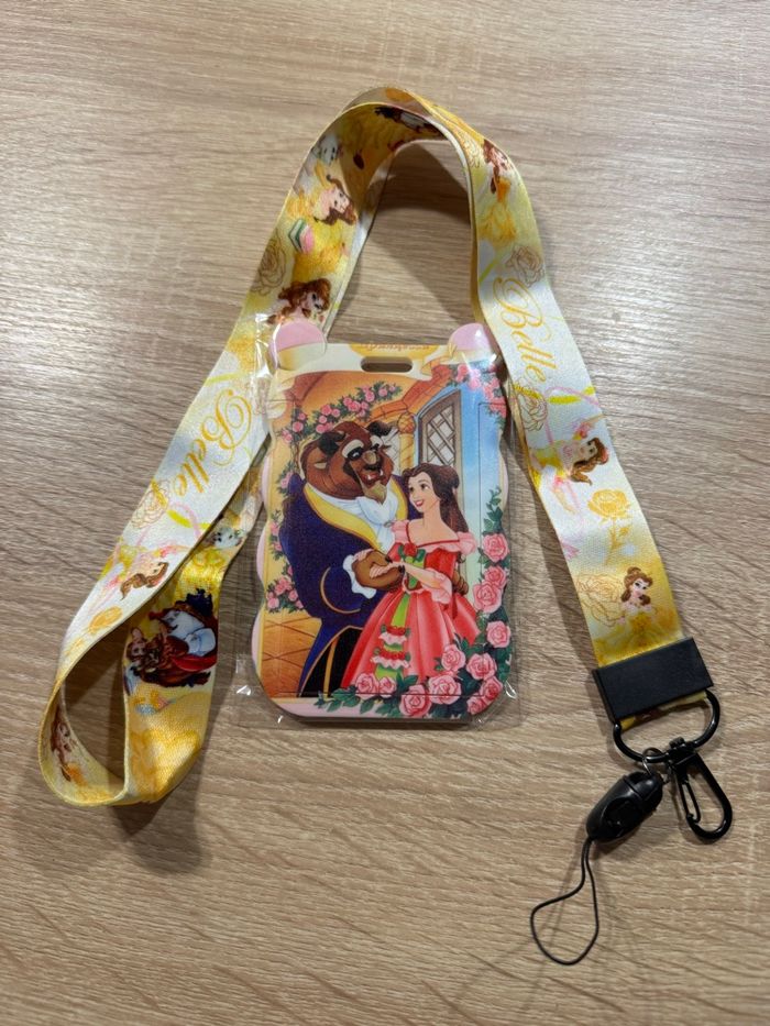 lanière (tour de cou) et porte carte la belle et la bête disney idéal pour les billets ou pass annuel Disneyland paris, pour célébrer les 30 ans du parc, carte de bus, badge de travail lanière, porte carte, porte clé, pin trading