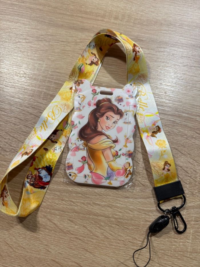 lanière (tour de cou) et porte carte la belle et la bête disney idéal pour les billets ou pass annuel Disneyland paris, pour célébrer les 30 ans du parc, carte de bus, badge de travail lanière, porte carte, porte clé, pin trading