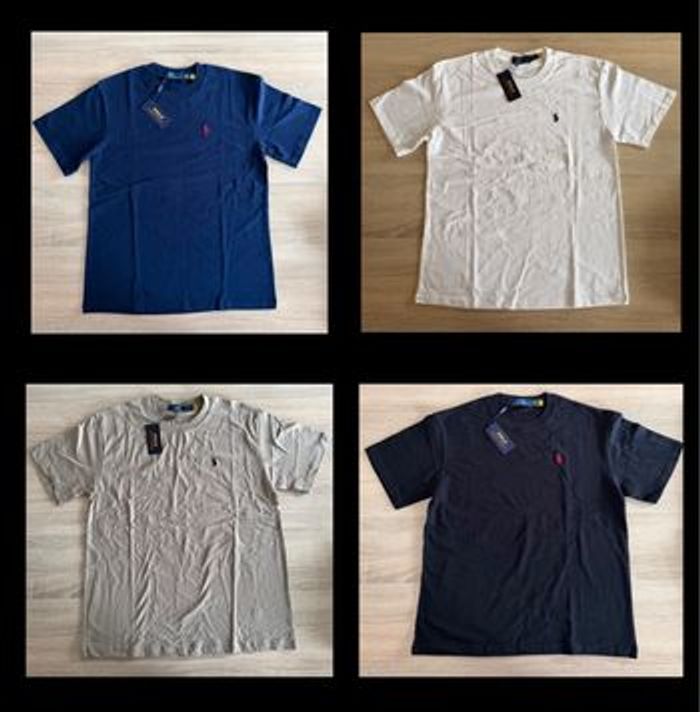 Tee shirt Ralph Lauren, Taille S ou M, et un seul taille L de disponible. Couleur : bleu marine/beige/noir/blanc. Envoi rapide en moins de 24h✈️ En ce moment promo🚨 25€ pièces OU 60€ les trois tee shirt au lieu de 75€😊 Profitez en avant qu’il ne soit trop tard😜 N’hésitez à m’envoyer un message avant achat, je vous dirais ce qu’il me reste (selon le stock). 🌸🛍️