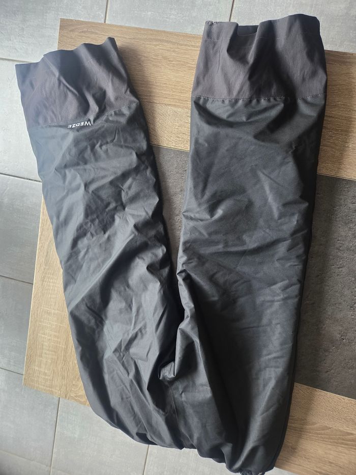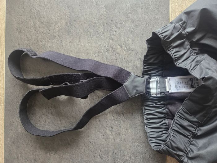 Pantalon de ski Wedze 8 ans gris foncé noir , bon état, juste le bas de la jambe gauche un peu décousu voir les 2 dernières photos. Mais super état général.
