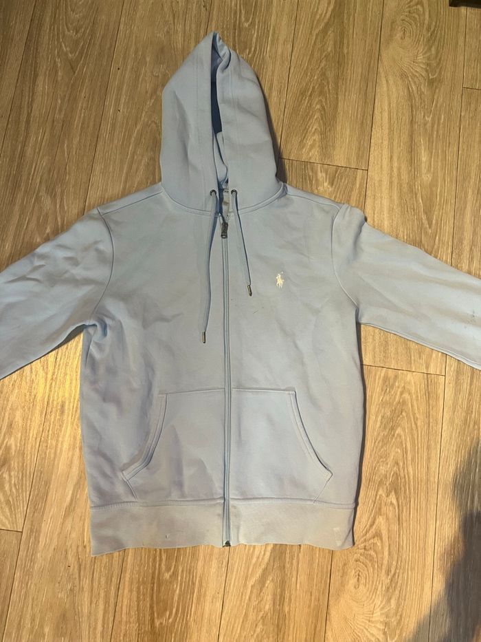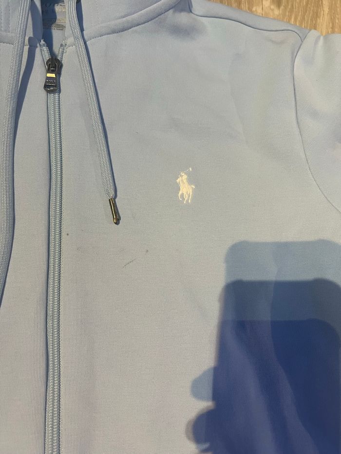 veste gilet Ralph Lauren Taille S Couleur bleu ciel Il y a quelques taches voir photo Envoi rapide Je peux encore trouver la facture et je n’ai plus les étiquettes