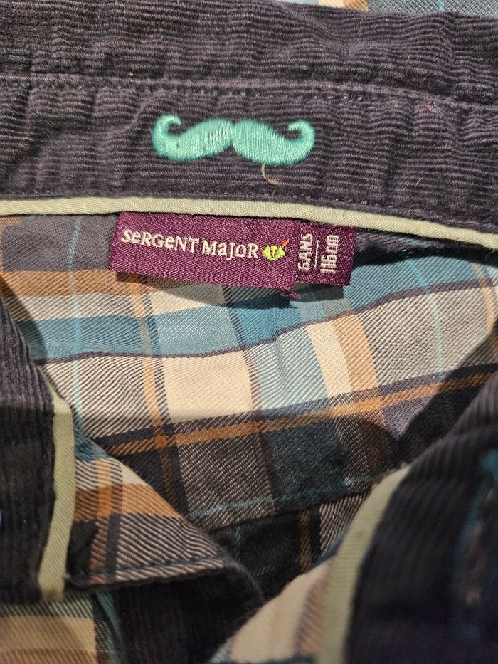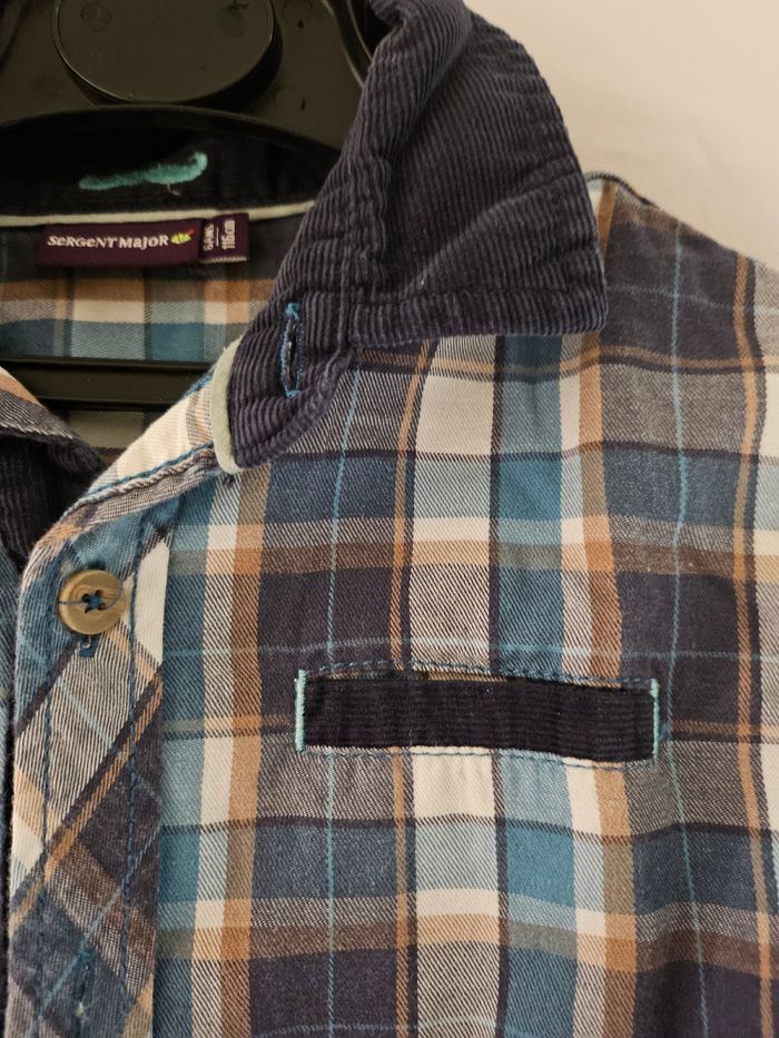Chemise manches longues. Poche sur la poitrine. Se ferme par boutons. Boutons également en bout de manches. Bleu, marron, blanc.. coudières Marque : Sergent major Taille : 6 ans