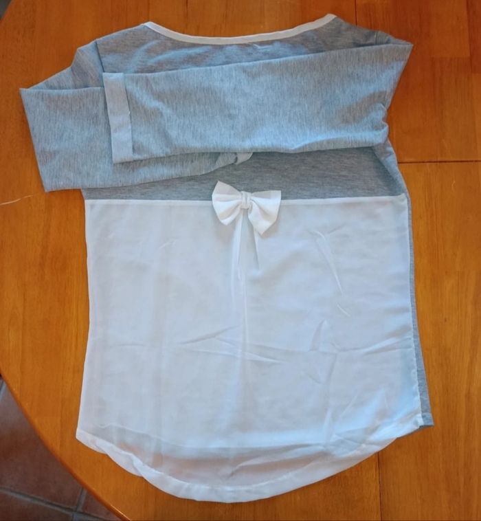 Sous pull femme Manche longue Petit noeud au dos Voile légèrement transparent Couleur: gris , blanc Taille: XL