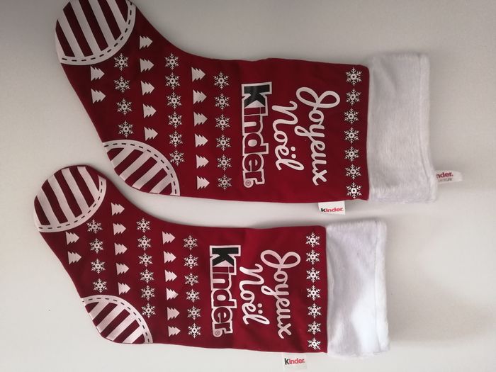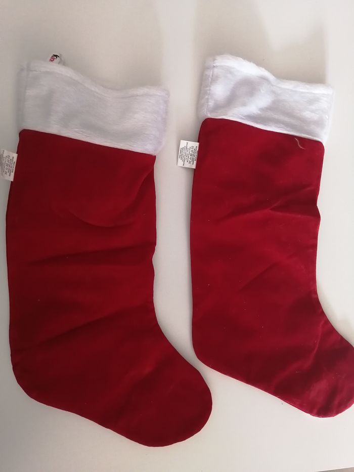 lot de 2 bottes chaussettes de noël décoration de noël à suspendre velours rouge bordeaux publicitaire kinder 31 cm