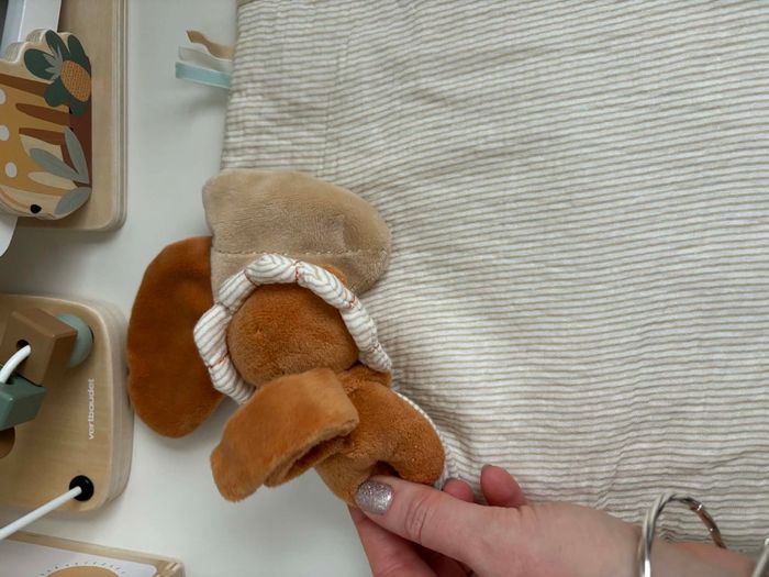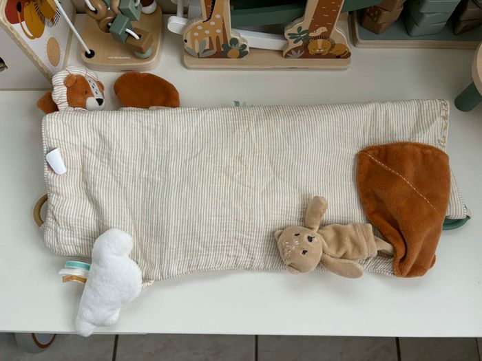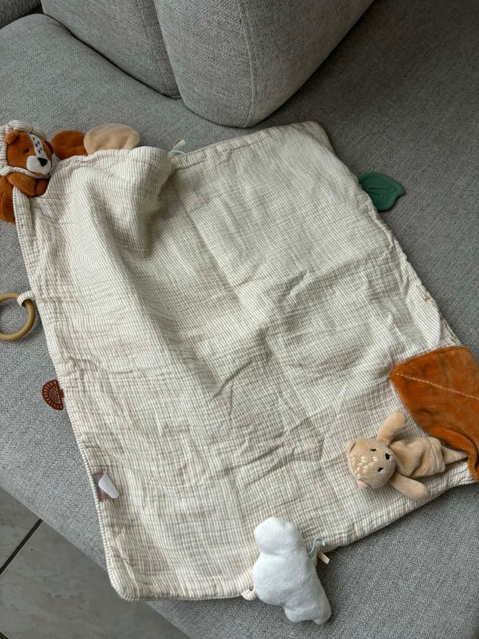 🤎 couverture d'activité collection babou 🤎 🛍️ noukie's 📏50×50cm ✨ Neuve ✨ Description : couverture d'activités en mousseline Babou de la marque Noukie's. Cette couverture d'éveil accompagnera votre tout-petit pendant ses périodes de jeux, les balades et le gardera bien au chaud. En grandissant, votre enfant pourra même s'en servir comme doudou. Lien qui permet d'attacher la couverture/ doudou au siège auto ou à la poussette. Mots clés 🔑 #bebe #jouets #premierage #stimuler #eveilbebe Catégorie Tapis