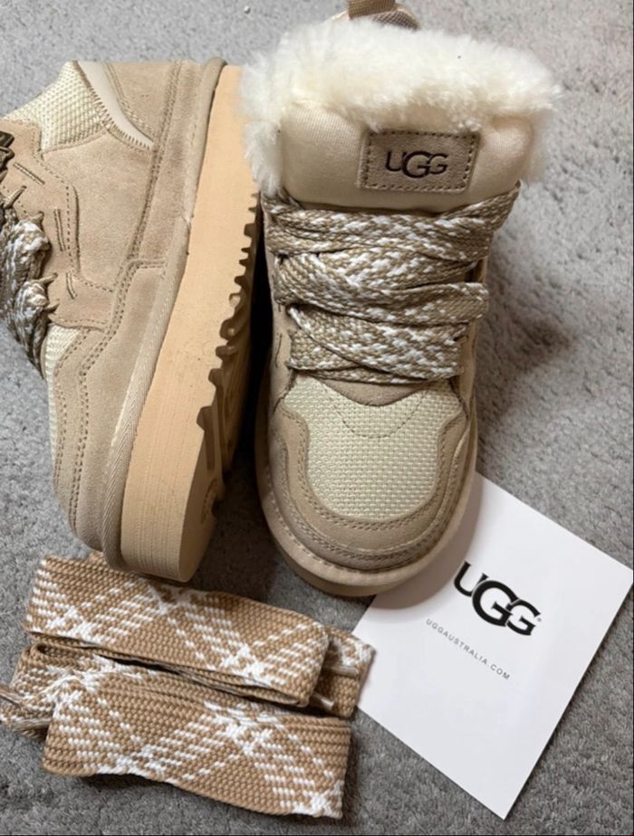 👟 Marque : sans 📏 Taille : 36 🆕 État : Neuves, jamais portées 📦 Boîte : Non fournie 💎 Qualité : 1.1 🔥 Détails : Copie premium ultra fidèle aux originales 🤍 Couleur : Beige / sable 🧸 Intérieur : Entièrement doublé en fourrure douce et chaude 🦶 Confort : Semelle épaisse, stable et antidérapante 🎀 Lacets : • Lacets larges montés sur les chaussures • ➕ 1 paire de lacets supplémentaire pour changer de style 🍂 Style : Cosy, tendance, parfait pour l’automne / hiver 📸 Conformité : Article conforme aux photos 🚚 Envoi : Rapide et soigné ✨