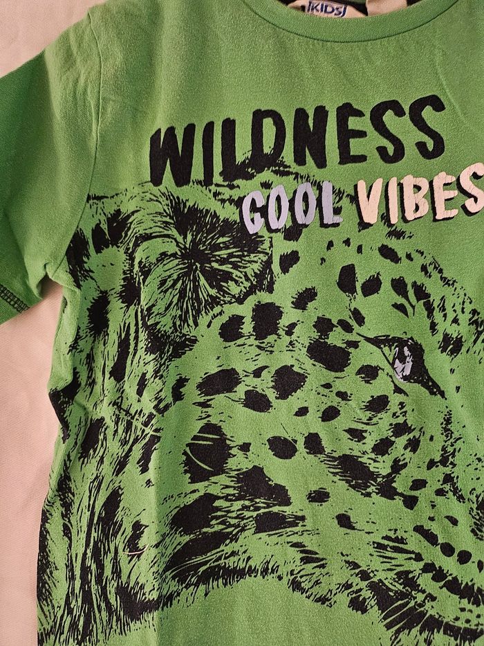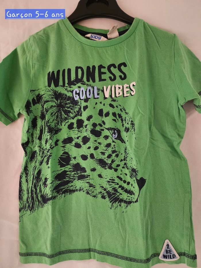 T-shirt manches courtes vert avec imprimé tigre. Marque : Kids Taille : 5-6* ans