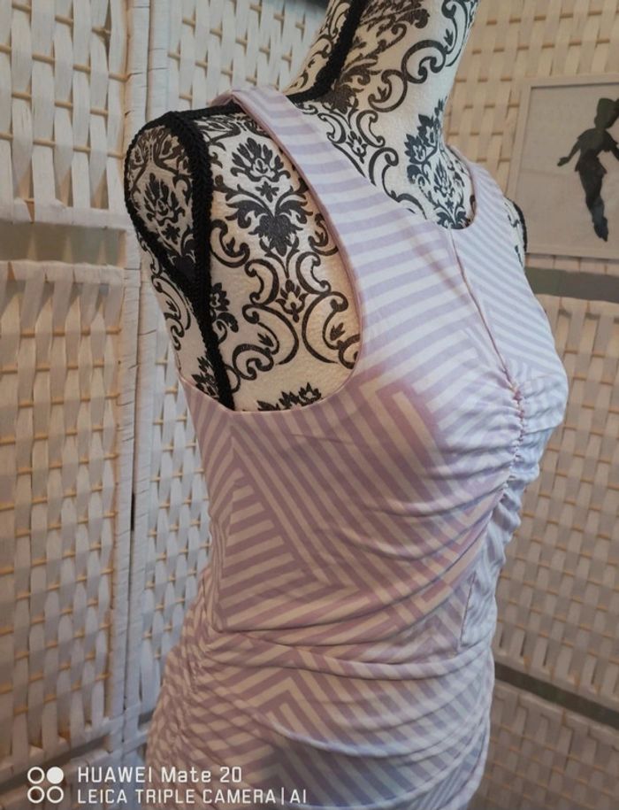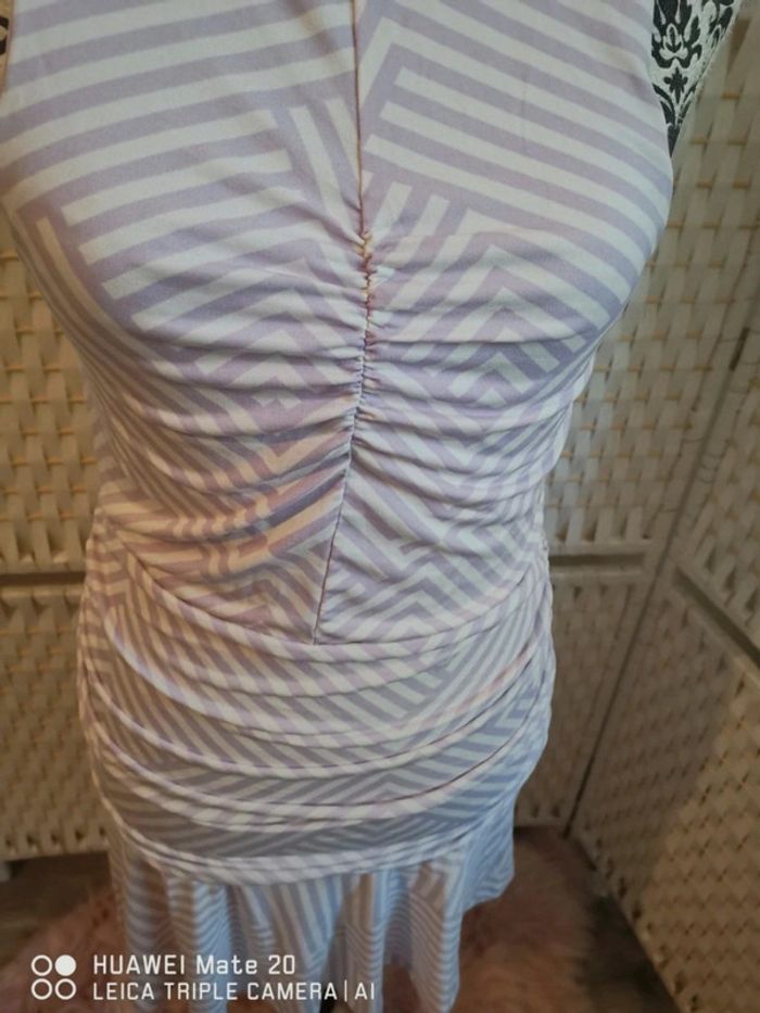 💕Jolie Robe drapée Mauve et blanc été femme TL / 40 high spirits 💕 - photo numéro 9