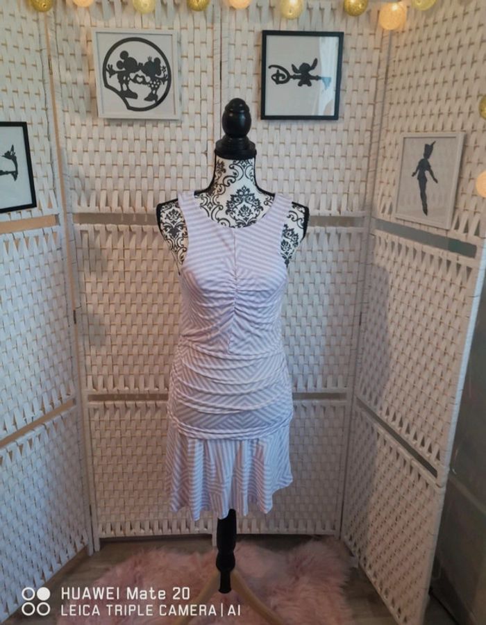 💕Jolie Robe drapée Mauve et blanc été femme TL / 40 high spirits 💕 - photo numéro 1