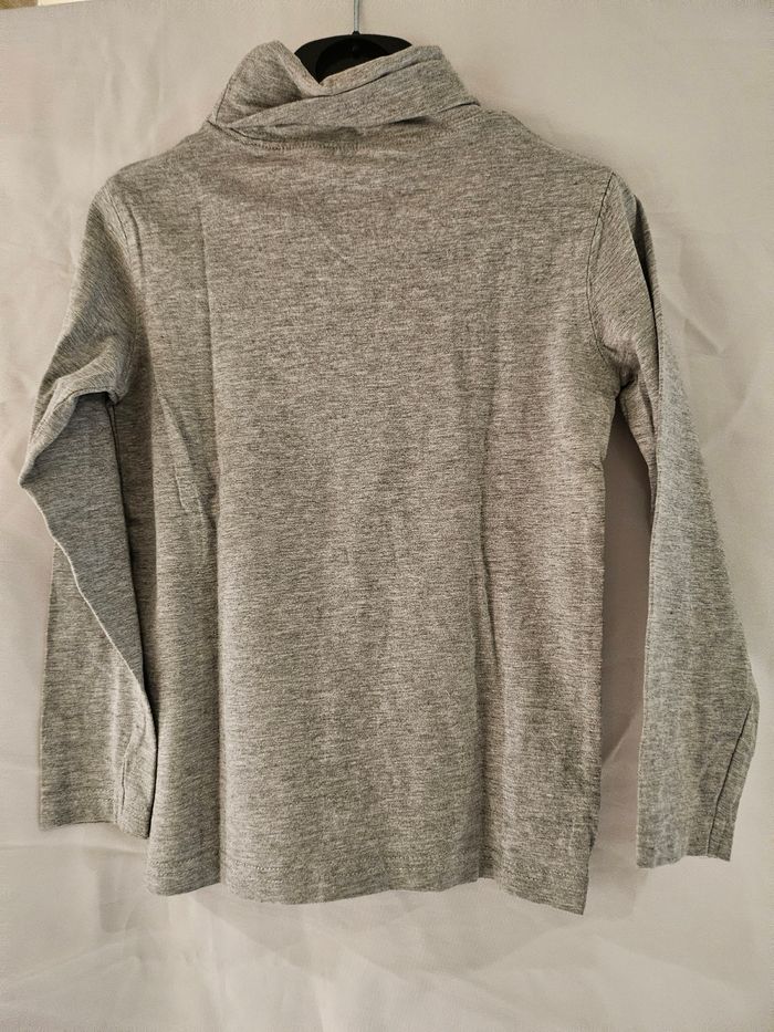 Haut/sous pull col roulé gris avec imprimés devant. Marque : Vertbaudet Taille : 6 ans