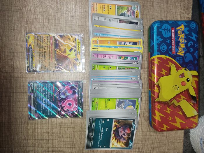 En français et officielles Contient 100 cartes avec 2 ultra rare et une boîte métal. 15€