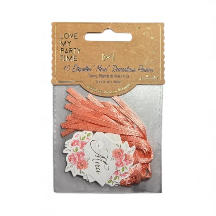 x10 Étiquettes “Merci” Love My Party Time Blanc Dégradé Roses Or 5.5x4 Neuf