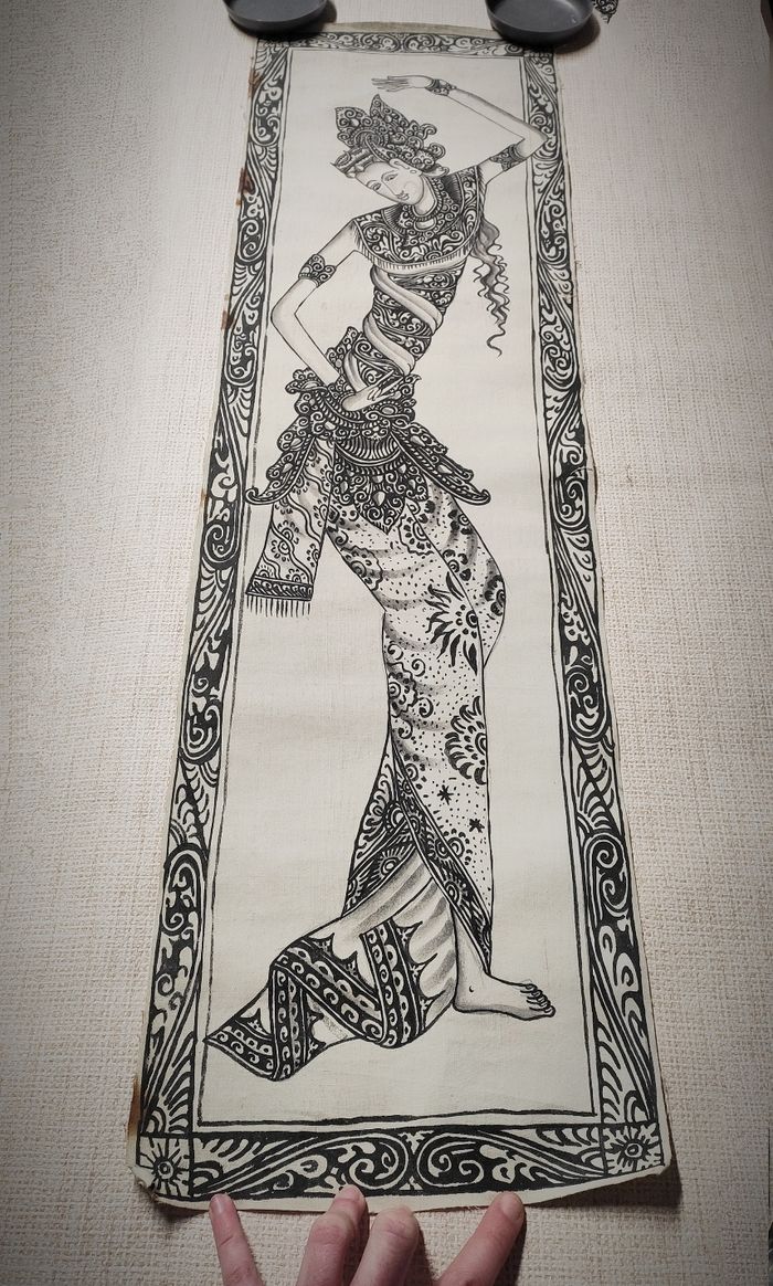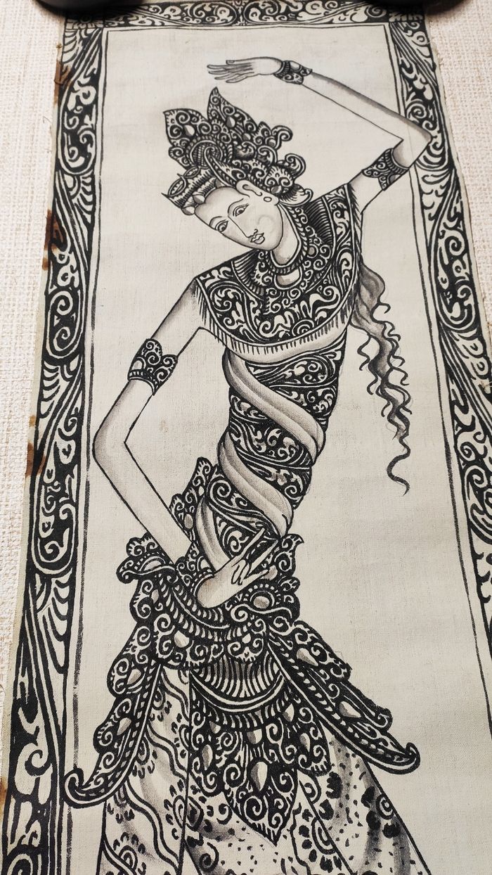 Jolie tapisserie décorative indienne Représentant une déesse (Quelque tâches de rouilles sur un côté voir photo) Peinture sur tissu, vintage