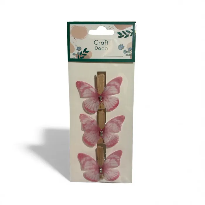 x3 Barrette Papillon Décorative Craft Déco Rose 3,5 cm Neuf