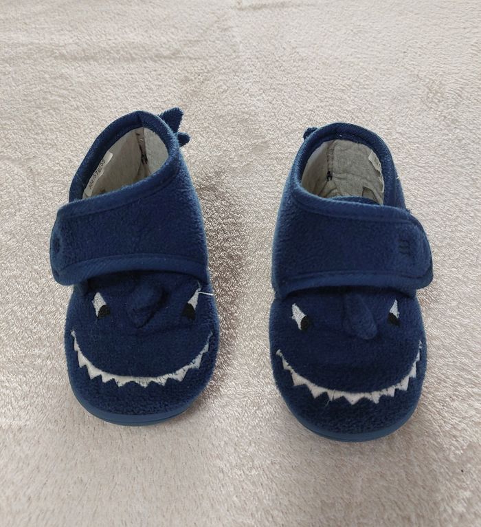 Chaussons requin pointure 21 Semelle caoutchouc avec quelques marques de peinture (voir dernière photo) Fermeture par scratch Très peu servi