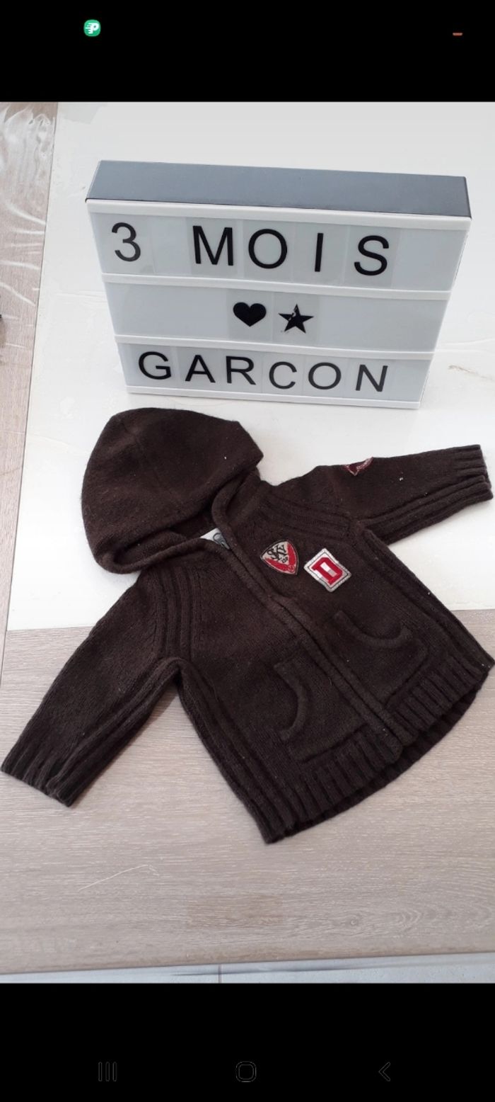 Gilet chaud en laine de couleur marron foncé avec fermeture Taille 3 mois