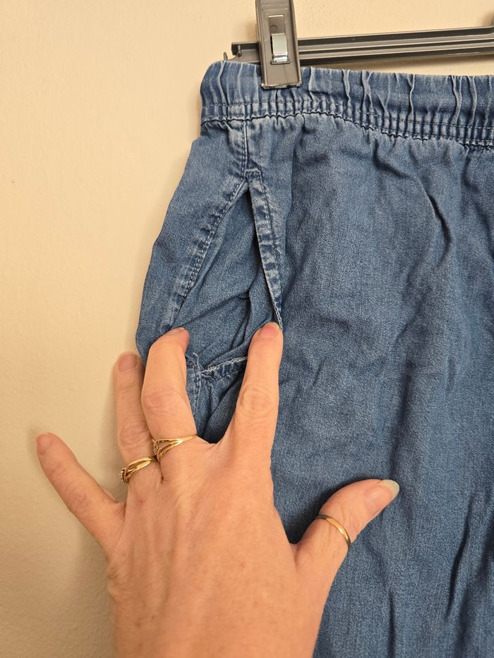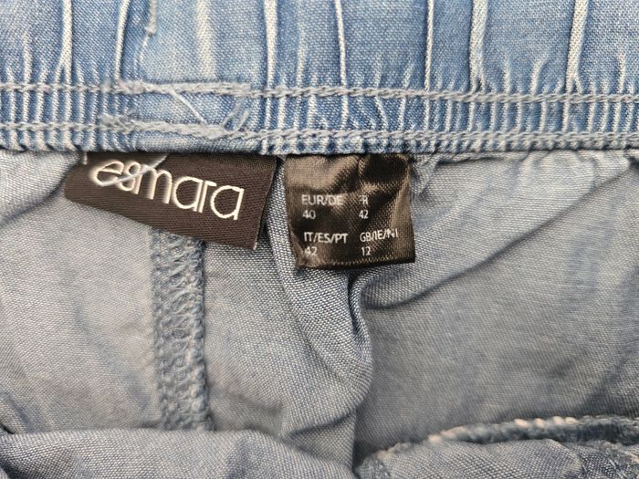 Pantalon jeans souple, taille élastique + cordelette pour serrer la taille. 2 poches avant Taille : 40 En parfait état