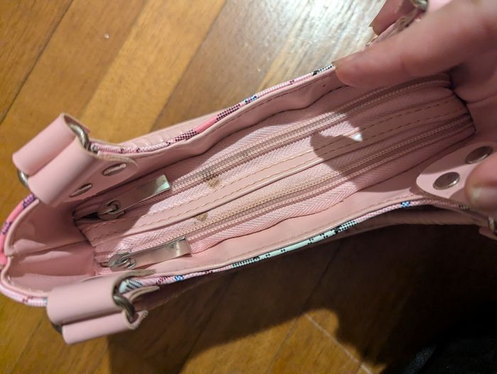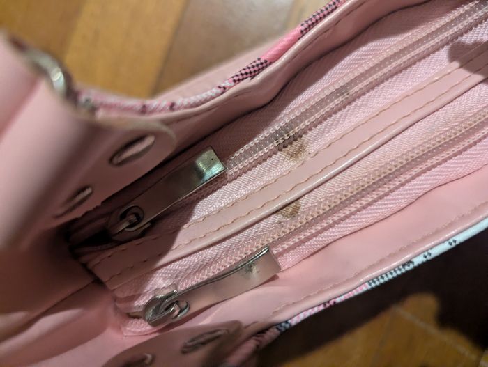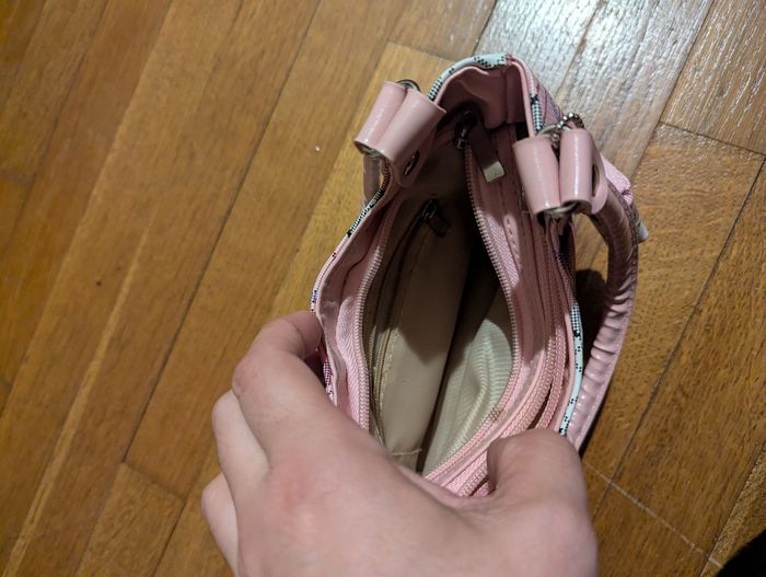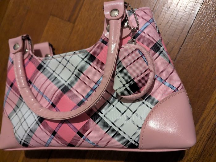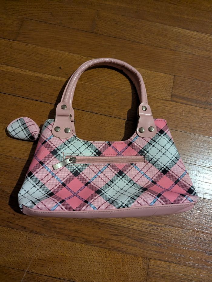 Sac à main pour fille Multipoches Ances pour le tenir au bras Petit porte monnaie accrocher comme porte-clé. Se ferme avec fermeture éclair A vendre rapidement ... Avant départ pour la déchetterie. Couleur : rose écossais