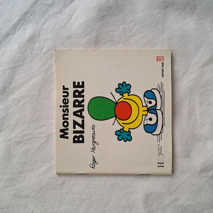 Livre Monsieur Bizarre Hachette jeunesse 1991 Roger Hargreaves Collection offert par LU Dimensions : 12,5 x 13,5 cm Poids : 37 grammes Bon état, couverture jaunie, agrafes une peu rouillées à l'intérieur traces d'utilisation voir les photos