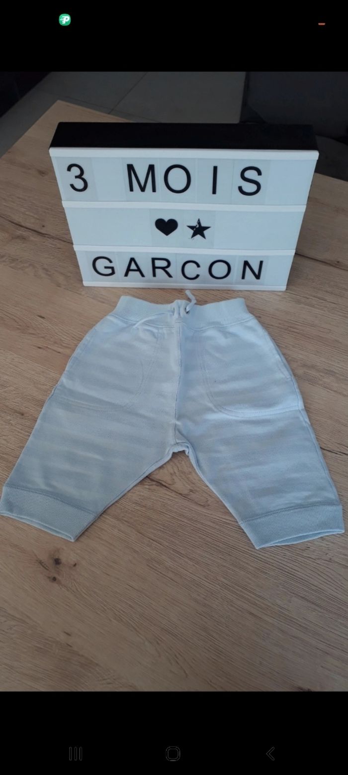 Pantalon rayé bleu ciel, type jogging A nouer avec un flot devant 2 poche devant Taille 3 mois