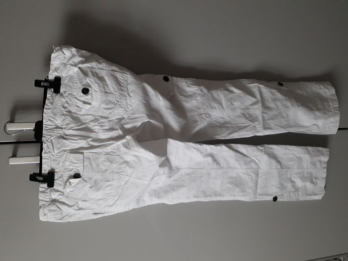 Pantalon de grossesse blanc Calin Kalin T 42 avec un large bandeau pour le ventre envoi rapide J'ai d'autres pantalons de grossesse , allez voir mes autres annonces. Envoi possible , Frais de port non inclus.