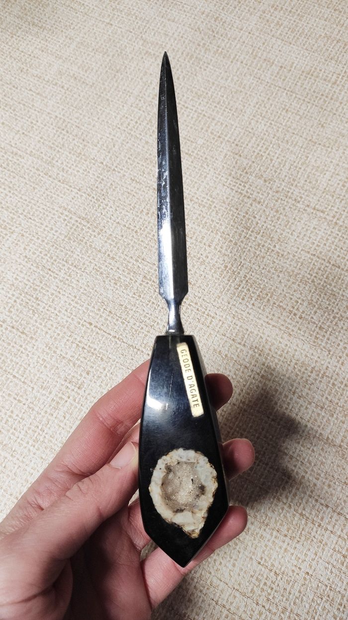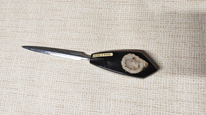 Coupe enveloppe/ papier vintage avec géode d'agate à l'intérieur (pierre semi précieuse). Ancien.