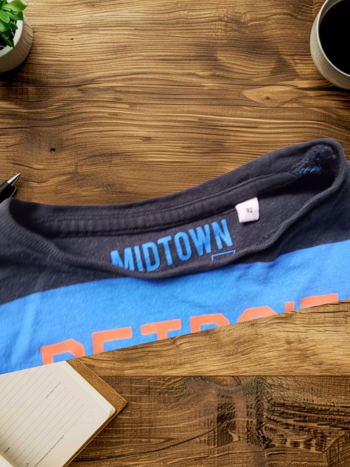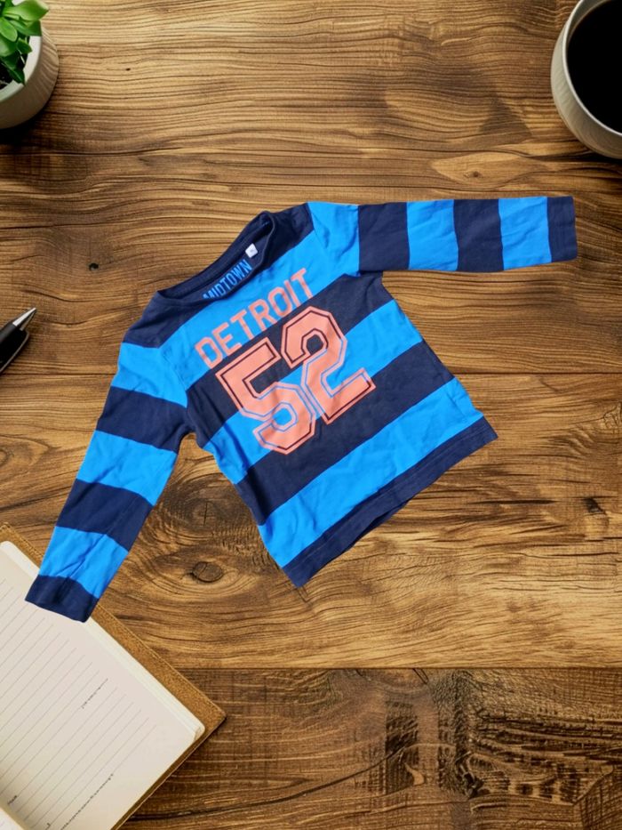 Je vends ce t-shirt à manches longues de la marque Midtown. ​Couleur : Rayures horizontales bleu marine et bleu azur. ​Motif : Inscription "DETROIT 52" contrastée en orange sur le devant. ​Matière : 100% Coton, agréable à porter. ​Taille : 92 cm (2 ans). ​État : Très bon état. ​Un haut au style sportswear, idéal pour le quotidien des petits ! ​ Tous les prix sont négociables et je fais un prix pour plusieurs vêtements achetés #ajas465bébégarçon24mois #ajas46524moisautomnehiver #ajas46524moisprintempsété #ajas46524moistbe