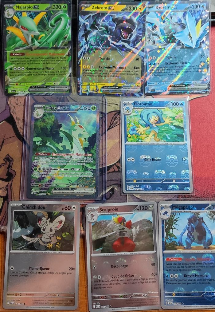 Vends en lot : Majaspic 164 Alternative (très propre, pas de défaut potentiel 10 PSA / CCC etc ) + Flotoutan masterball + 3 pokeball ( Chinchidou scalproie et Megapagos ) et 3 ex ( Majaspic Zekrom et Kyurem ) Série EV10.5 Foudre noire BLK bloc écarlate et violet Pokemon par Asmodee Expédition rapide et soignée !