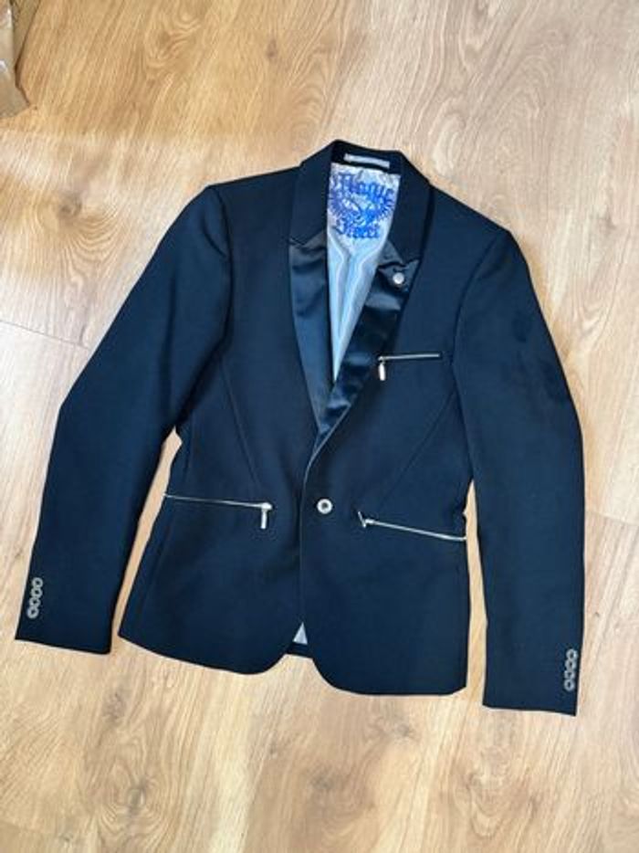 Blazer noir homme La Redoute avec fermetures éclairs : • état comme neuf, jamais porté • aucuns défauts • 2 poches avec fermetures éclairs + 1 une factice au niveau du torse • taille 42 FR = 32 US • 100% polyester 📦 envoi rapide et protégé