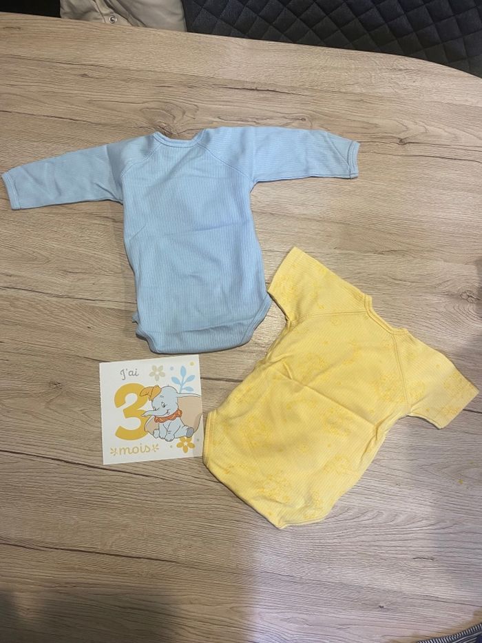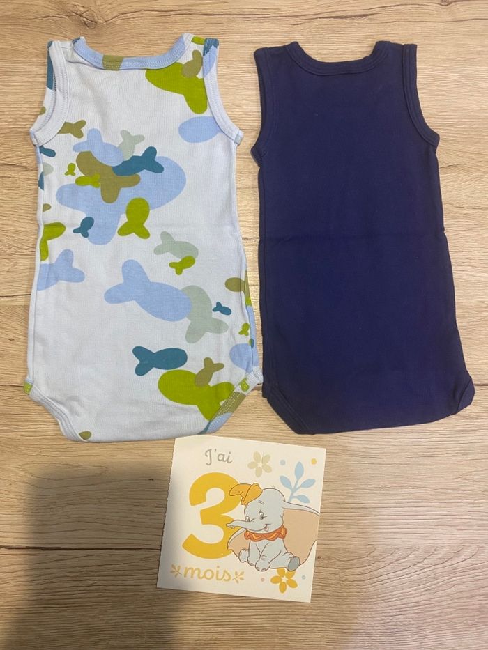 Lot de 9 body taille 3 mois comprenant : - 3 body sans manches (2 Petit Bateau/1 sans marque) - 4 body manches courtes (1 Disney/2 TCF) - 2 body manches longues En parfait état.