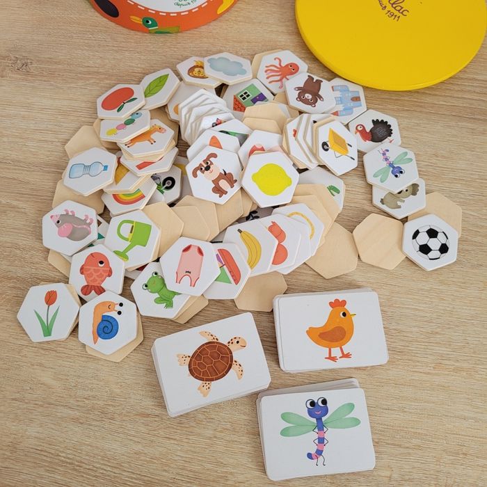 Jeu d'observation Vilac pour les 3/6 ans, vendu avec 100 cartes et 100 pions.
