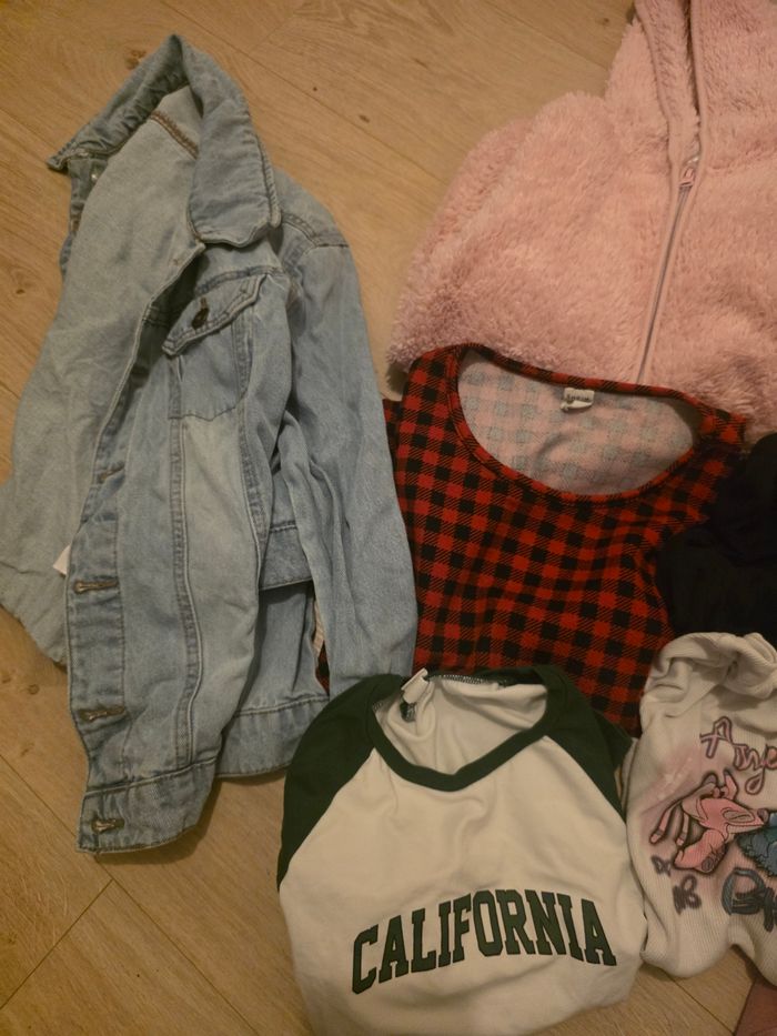 Lot 12ans 1 veste en jean 1 veste moumoute 1 ensemble de pyjama chaud 1 haut de pyjama chaud 2 croc top manche long 2 Tee-shirt manche long 1 ensemble de jogging