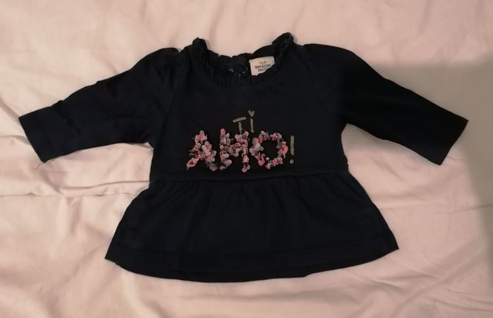 T-shirt manches longues bleu foncé, taille 3 mois, marque Tape à l'œil, en très bon état.