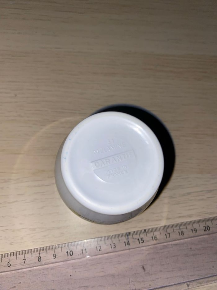 Lot d’un verre et d’une assiette creuse. L’assiette comporte un point noir qui ne part pas, un peu jauni, quelques traces d’utilisation. Le verre est en très bon état. #vichnini_vaisselle