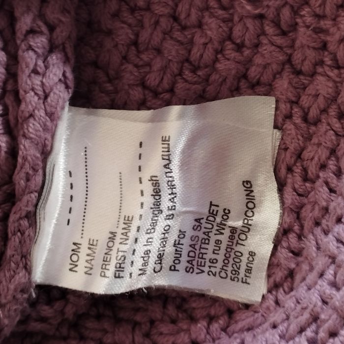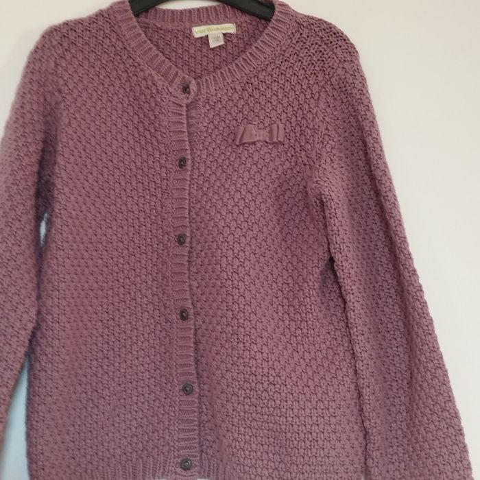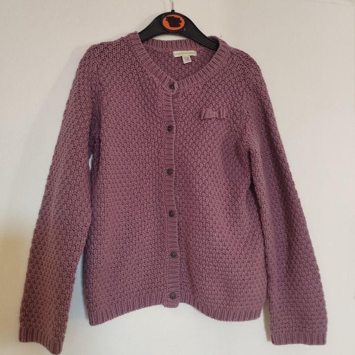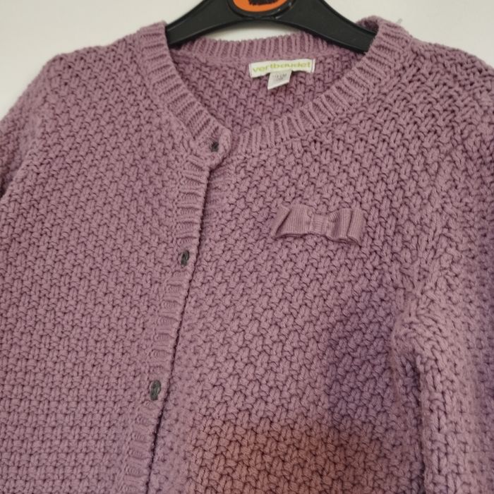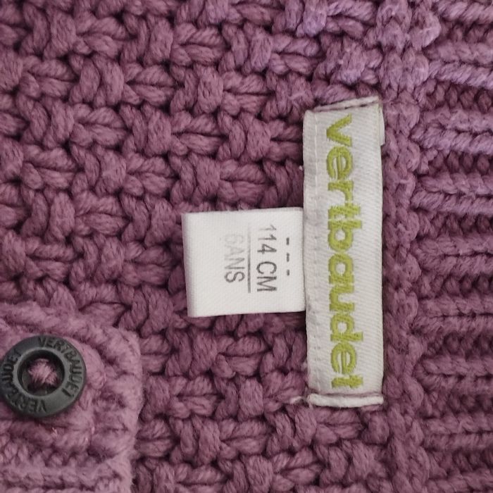 Gilet grosse maille de couleur violine pour fille de 8 ans de chez Verbaudet. Fermeture par boutons. 60 % Coton 40 % Acrylique.