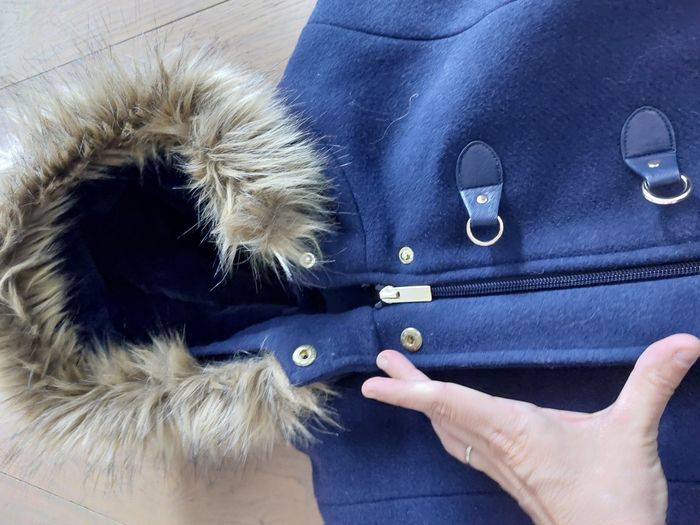 Très peu porté - excellent état Capuche avec imitation fourrure (fourrure amovible) Fermeture par fermeture éclair + pressions sur le haut du manteau pour être bien au chaud 2 poches Boutons sur les manches Larg epaules : 54cms Long manches : 63cms Long cou - jambes : 96 cms Remise en mains propres sur Caluire mairie ou envoi à vos frais