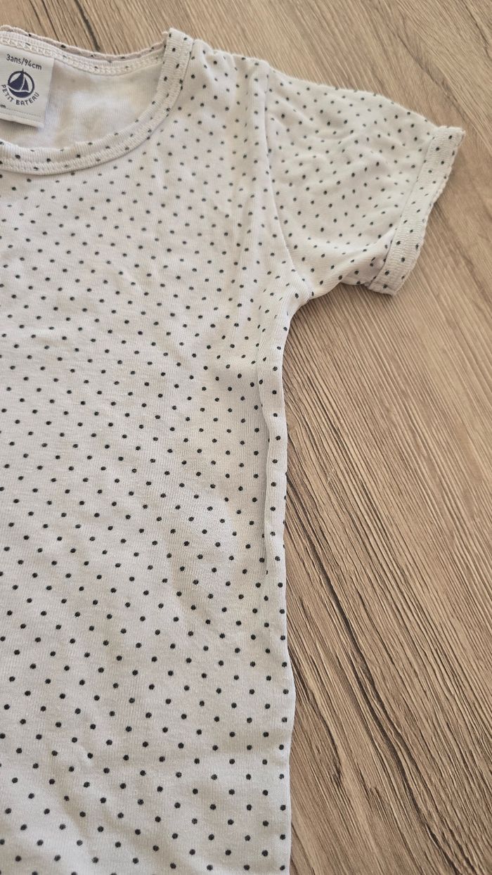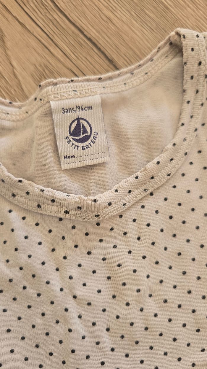 Tricot de peau petit bateau 3 ans Blanc Pois noirs Col rond #petitbateau #tricotdepeau
