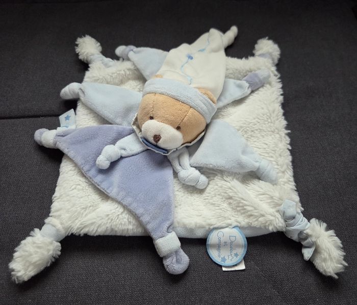 Doudou et compagnie ours Petit chou carre plat blanc et bleu