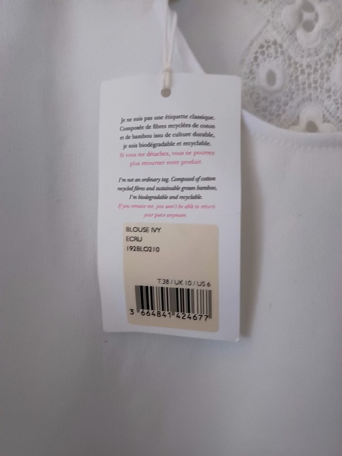 Vends blouse sezane neuf avec étiquette taille 38 Broderie a l'avant Décolleté Leger dans le dos Belle effet