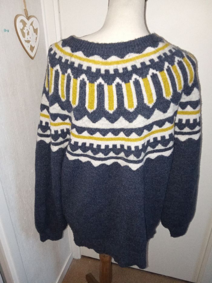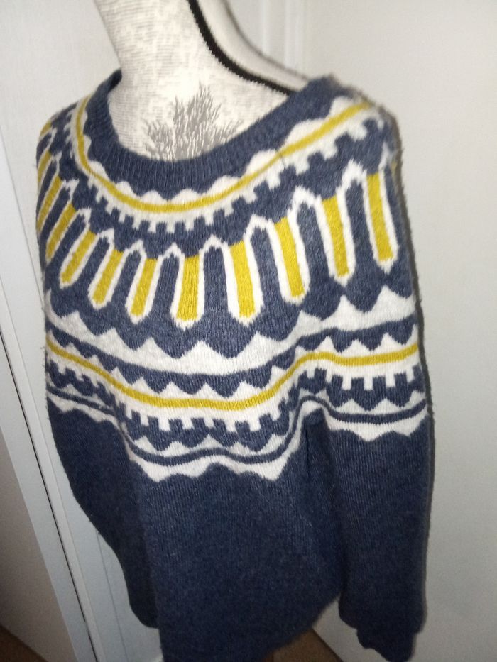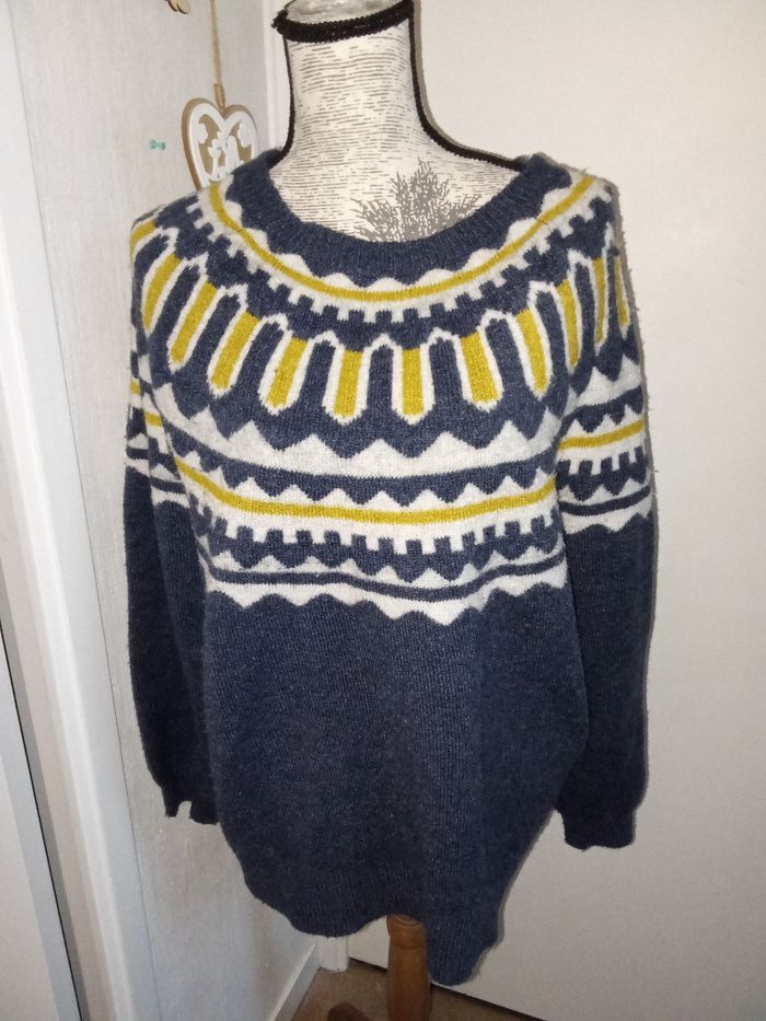 Très joli pull de la marque George noté taille medium mais qui correspond plutôt à une taille 40-42. À noter quelques bouloches, bien chaud et doux. Bon état général cependant. De nombreux autres vts femme également à vendre ds mon dressing et réduction activée