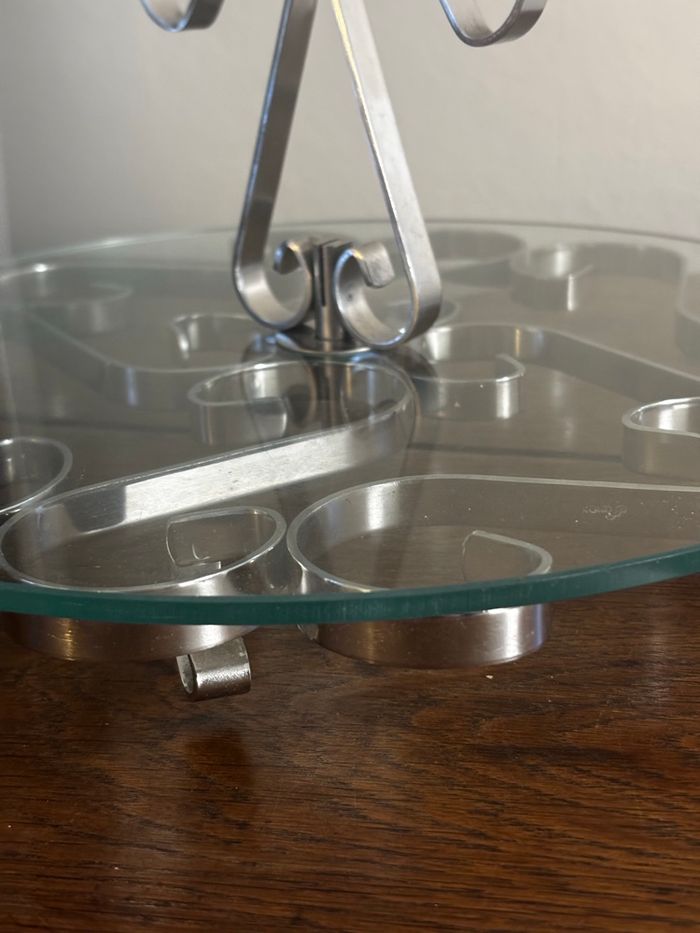 Joli plateau à fromage en verre et inox arabesques  - photo numéro 6