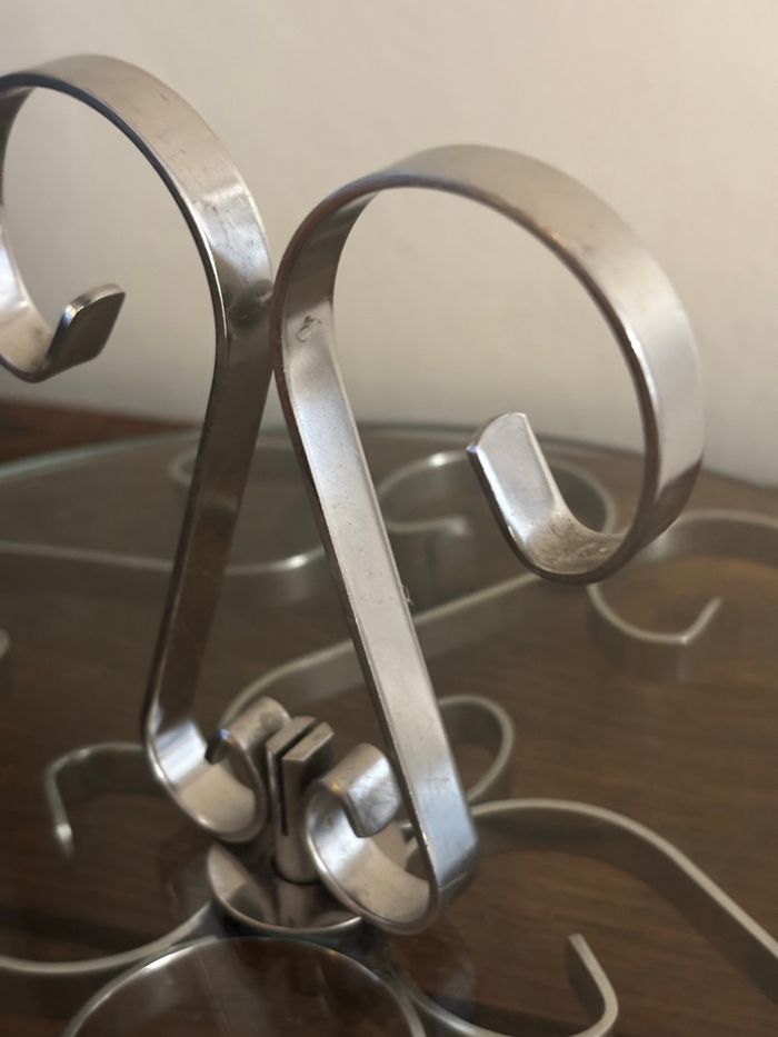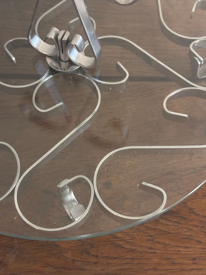 Joli plateau à fromage en verre et inox arabesques  - photo numéro 5
