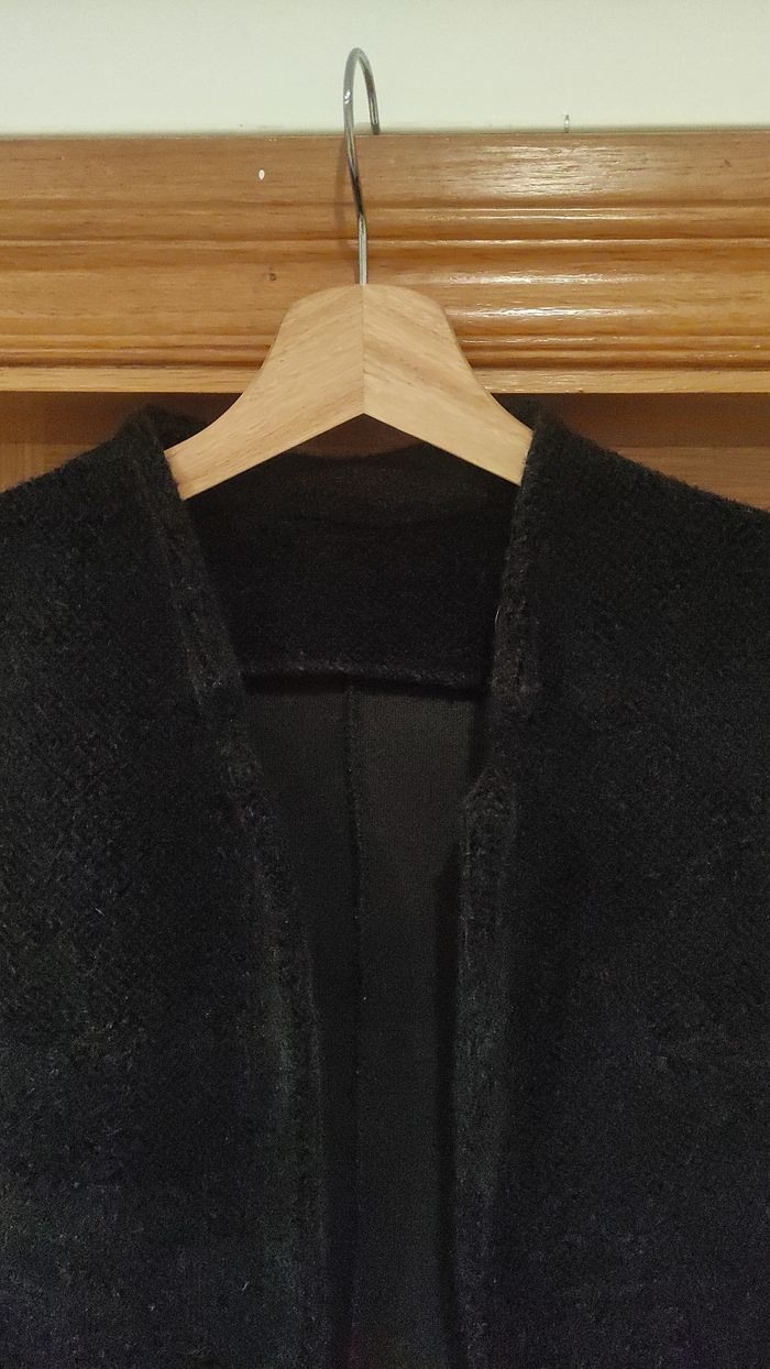 Chaqueta casi nueva. Negra , imitación de ante. Sin botones ni forro. Ideal para lucir con un vestido o unos vaqueros.